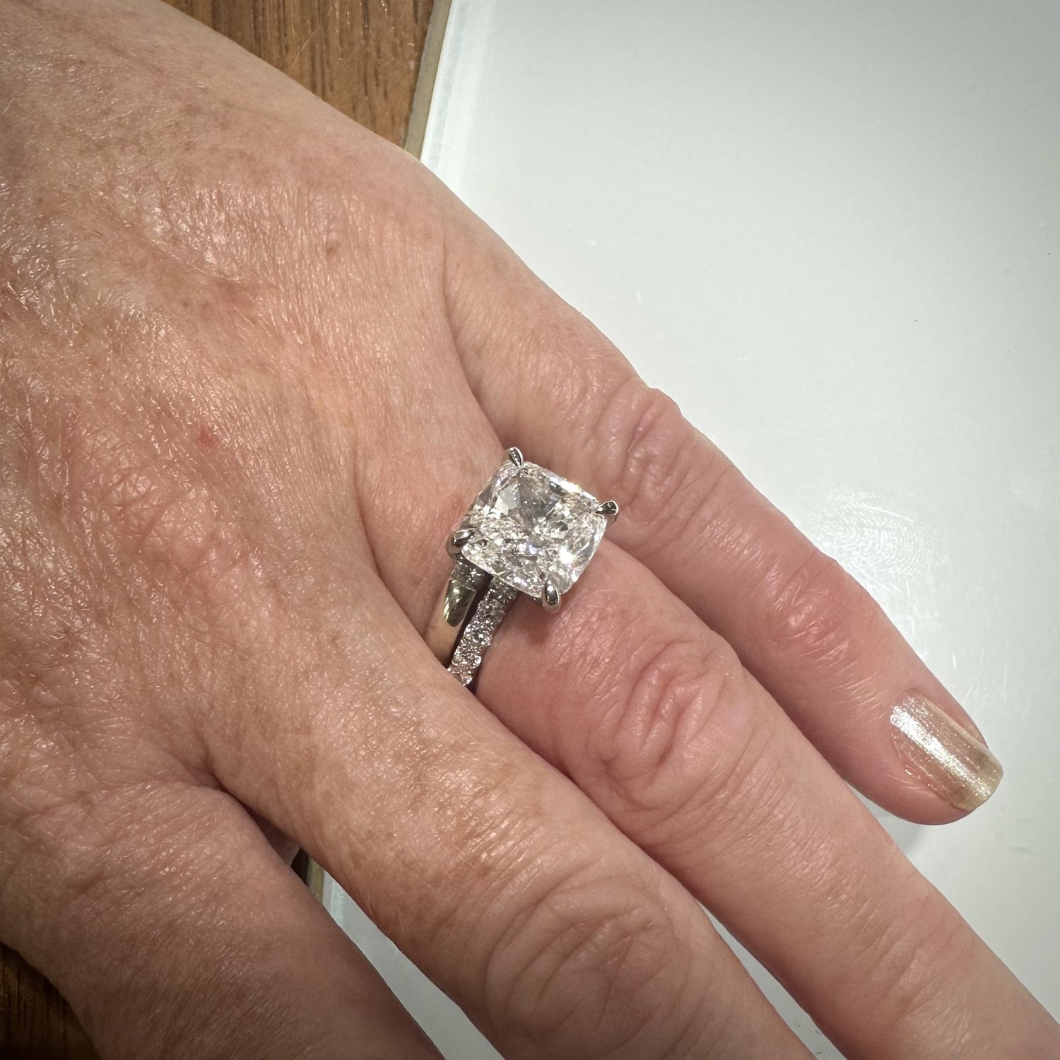 Based on a recommendation from one of her colleagues our customer was referred to us. In her words 'I was looking for something specific, but couldn't find it until I spotted the same style ring on my colleagues finger, and I said that is the ring I want", that's were we stepped in and took her idea and turned it into a reality.