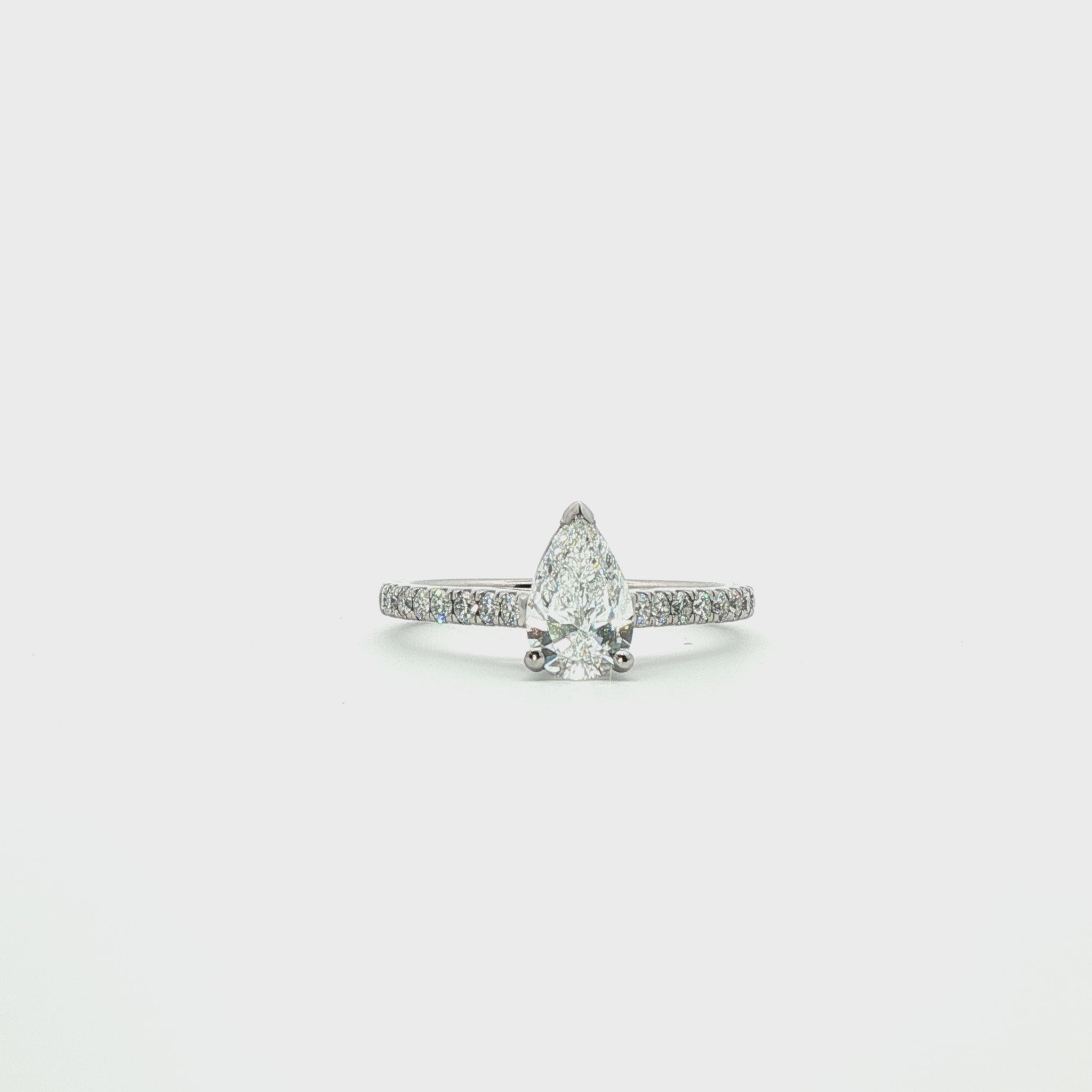 Platinum pear cut diamond solitaire ring with brilliant cut diamond shoulders -1.05ct