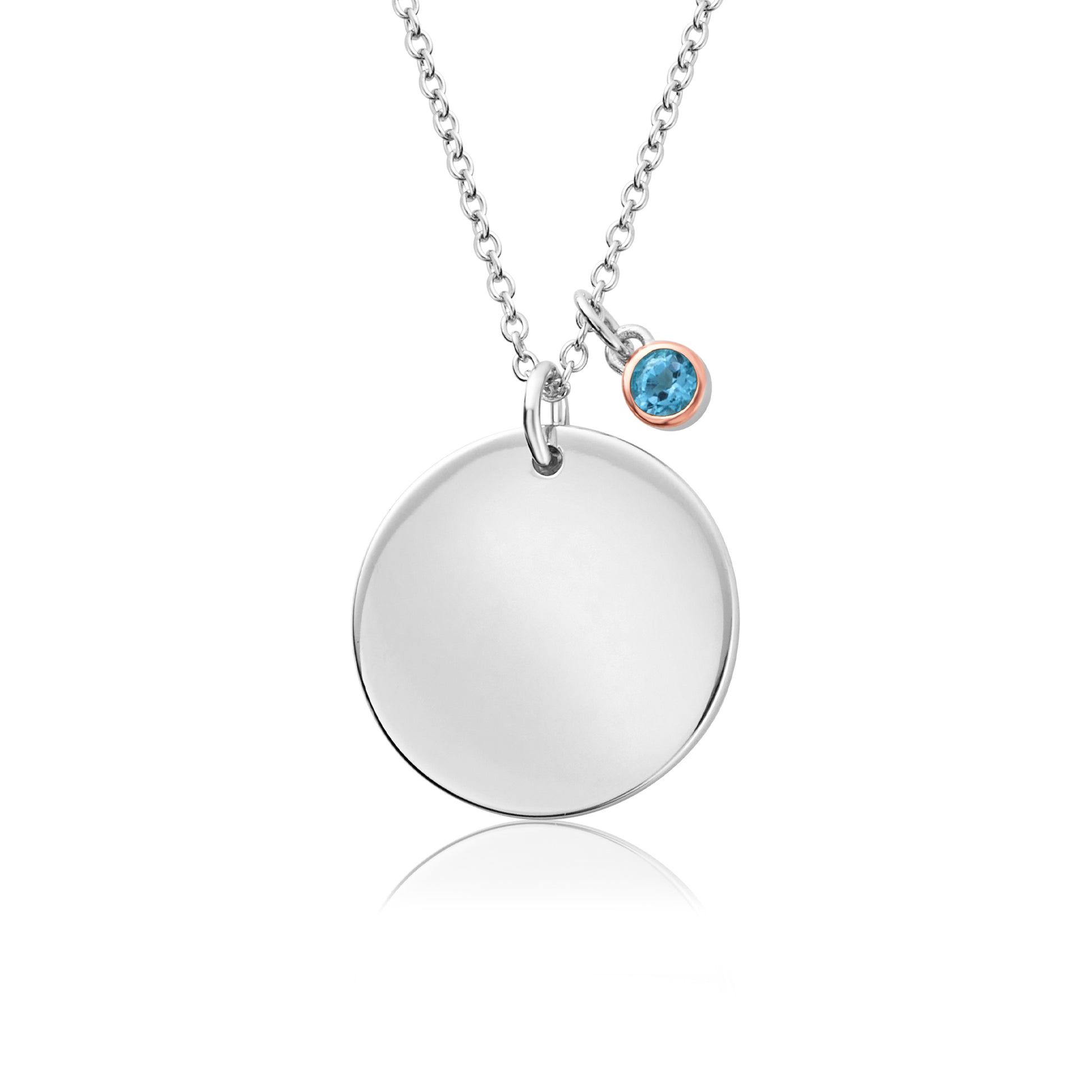 Fizzing with joy, just like a glass of birthday bubbly. The Clogau Celebration March Birthstone Pendant contains genuine round faceted aquamarine, a meaningful gemstone for anyone born in this month. Set in sterling silver, and adorned with rose gold containing rare Welsh gold, it’s available on a 22” trace chain that can also be worn at 20” and 18”. Engrave it with a name or message for a truly personal touch.