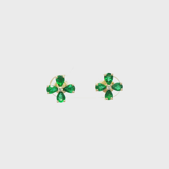 Each comprising of four small pear cut emeraldss and one small brilliant cut diamond, claw set into a 'clover' shaped formation.