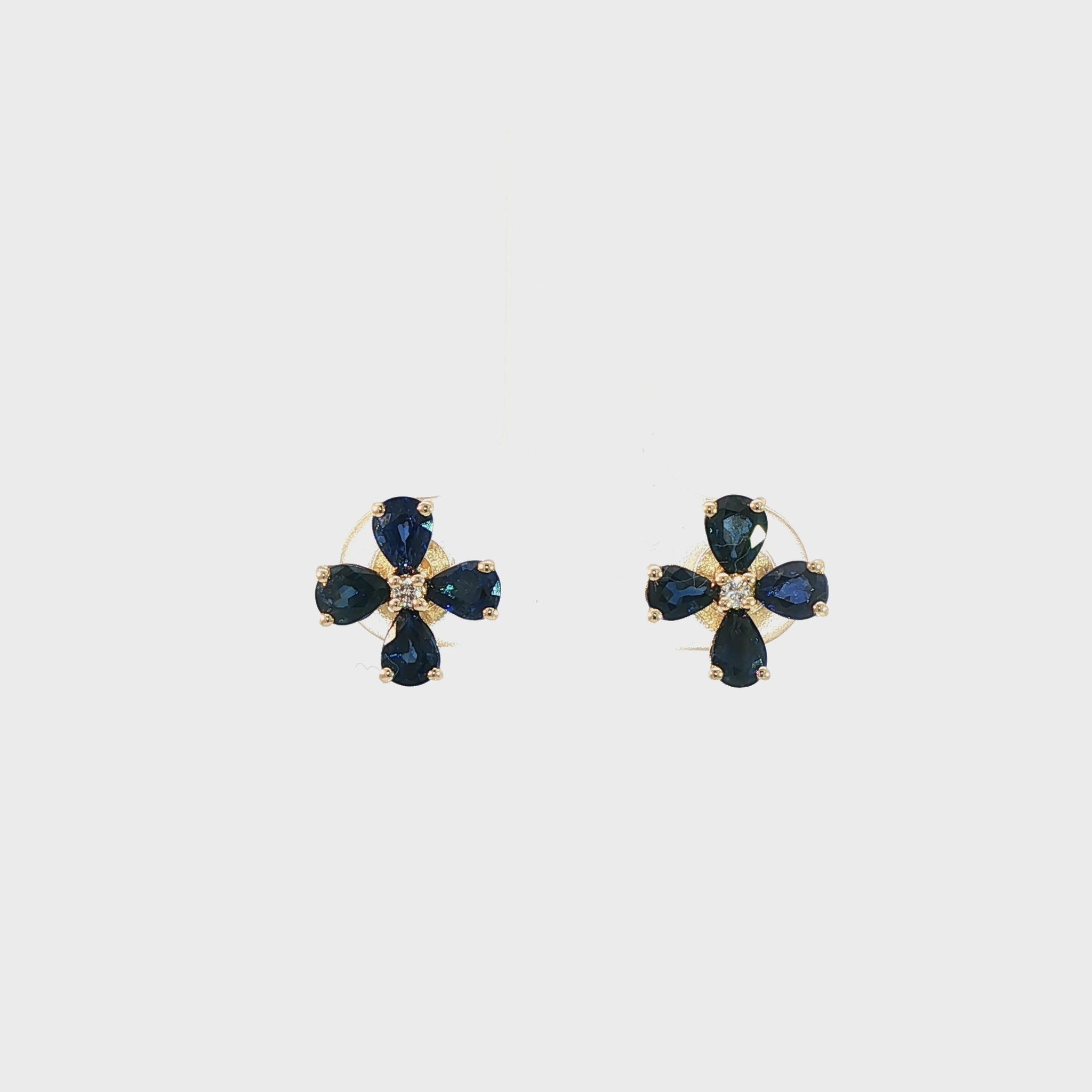 14ct Yellow Gold Sapphire & Diamond Cluster 'Clover' Earrings - S1.63ct/D:0.03ct