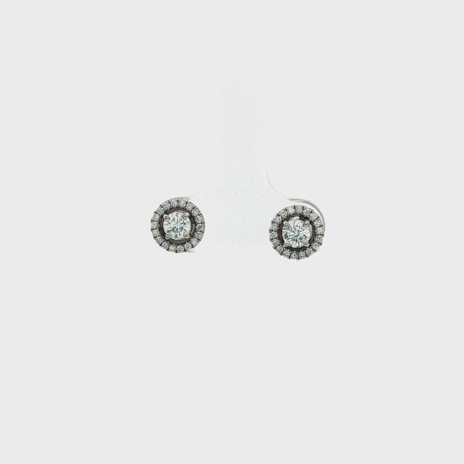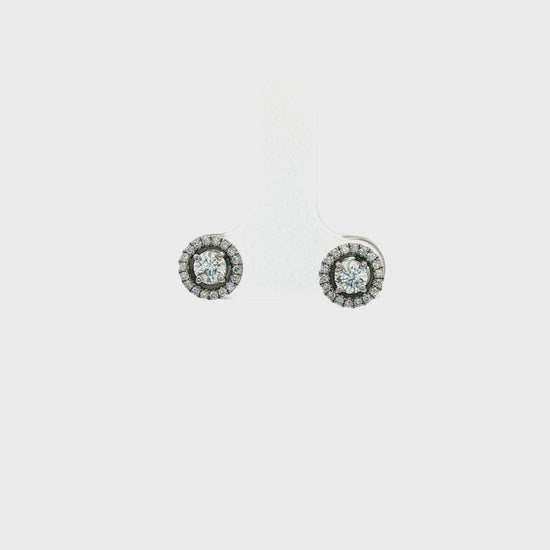 Platinum Brilliant Cut Diamond Stud Earrings With Screw-on Diamond Set Jacket Halo - 0.43ct / 0.18ct.
