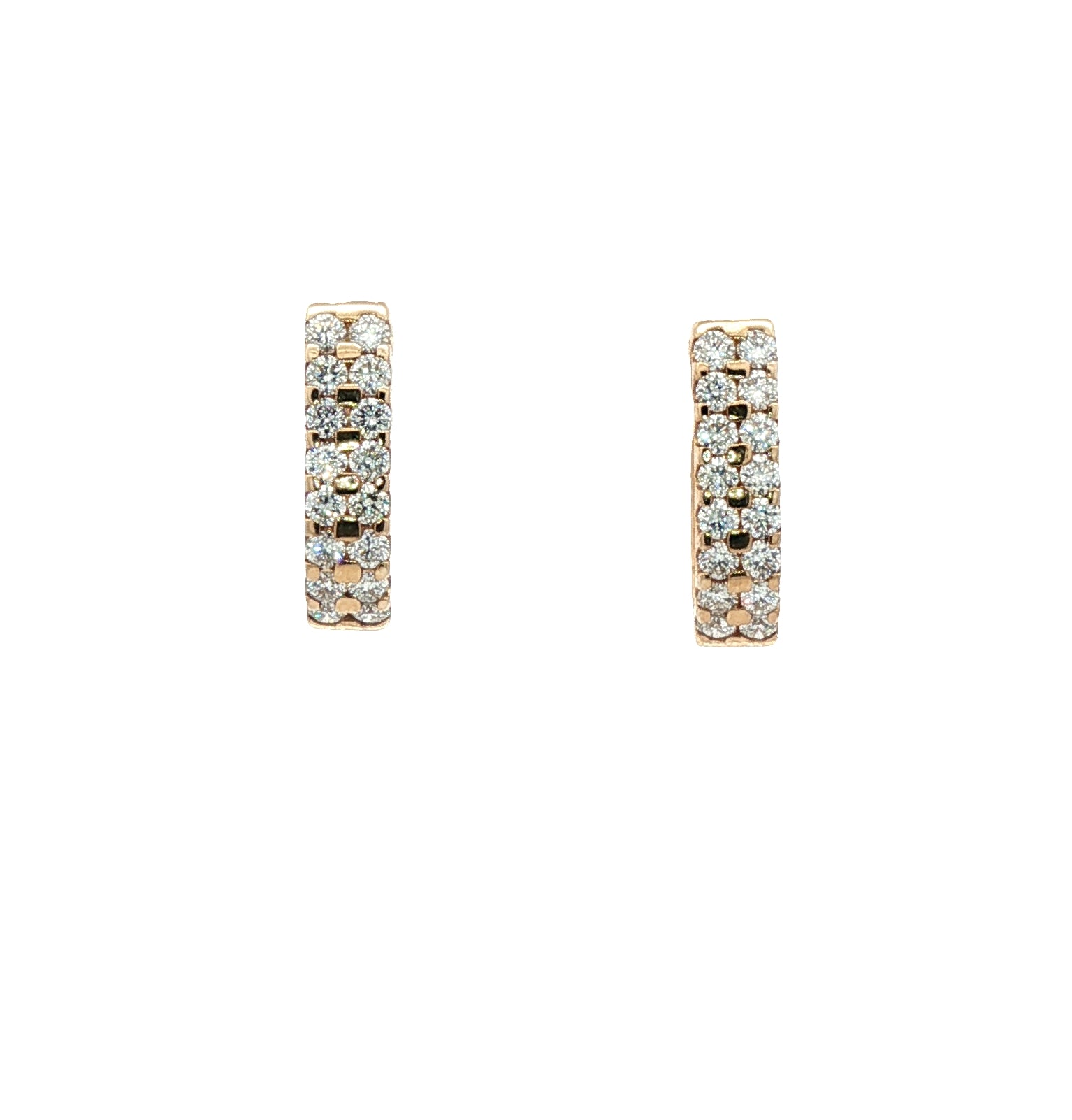 Each comprising of two rows of eight small brilliant cut diamonds in micro claw setting, with U-shape plain solid back, post fitting for pierced ears.