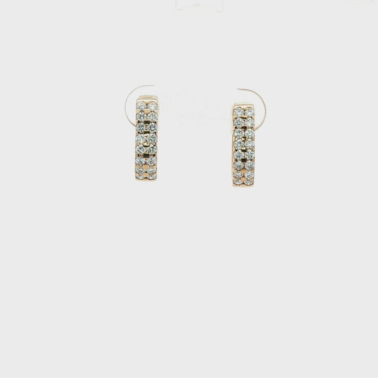 9ct yellow gold double row brilliant cut diamond huggie hoop earrings - 0.65ct.