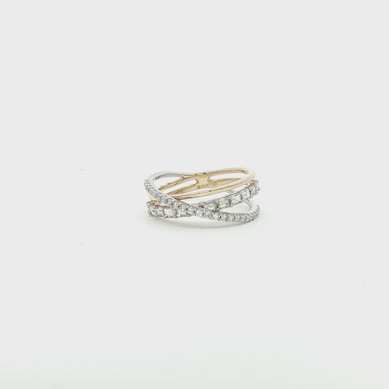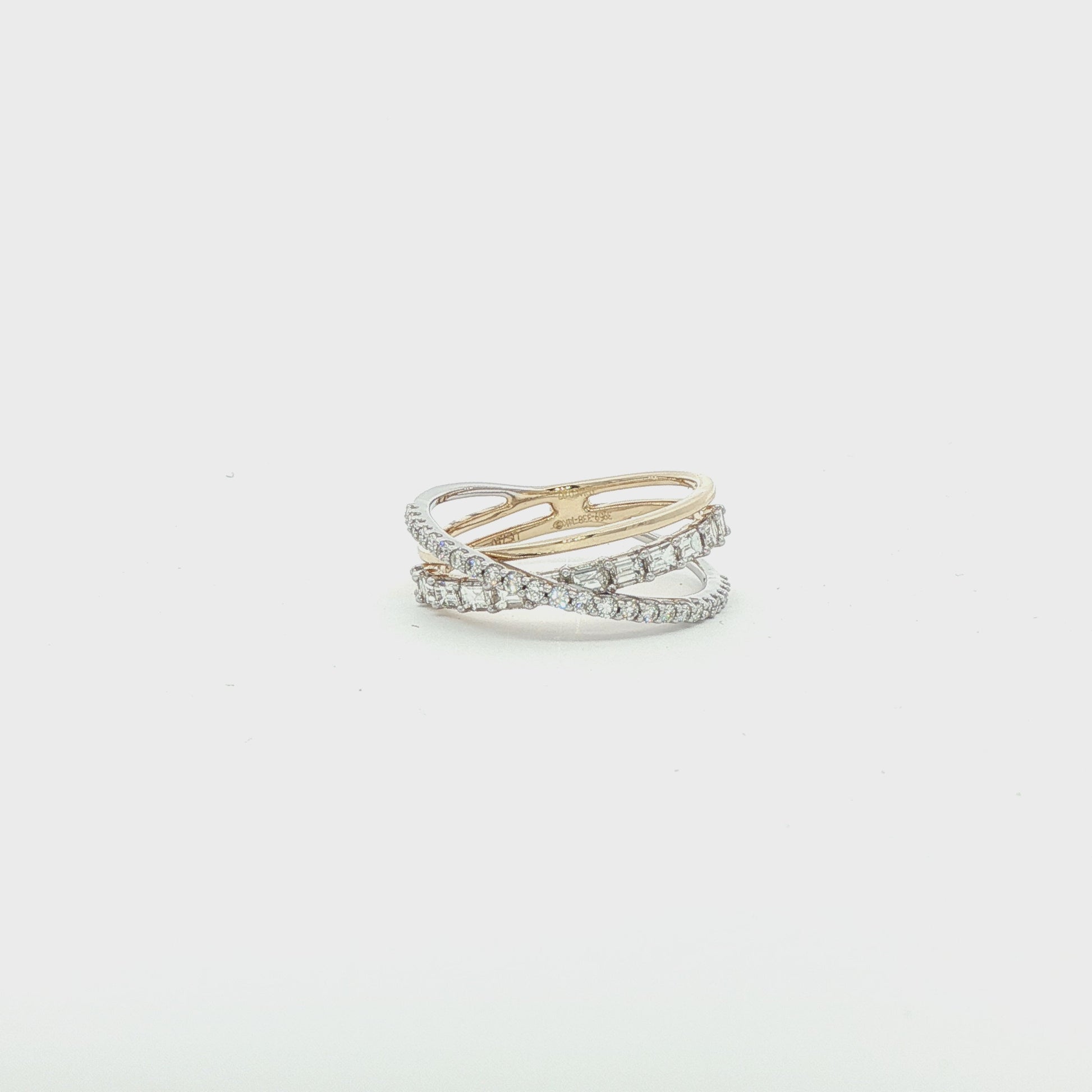 14ct Yellow & White Gold Baguette & Brilliant Cut diamond Triple Crossover Design Dress Ring - 0.74ct/0.235ct.