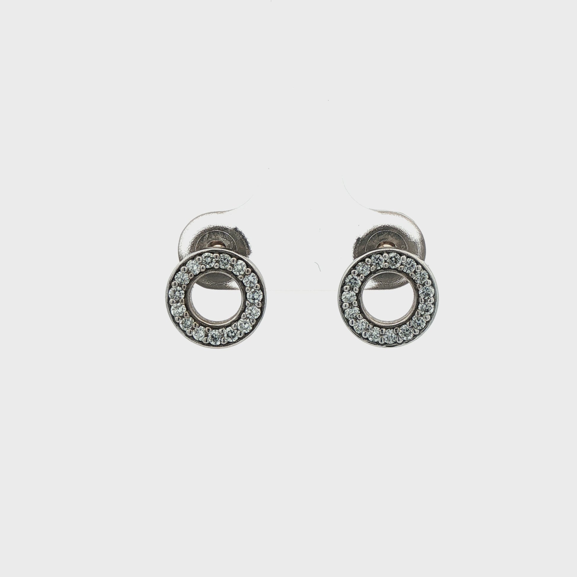 Bespoke: 18ct white gold brilliant cut diamond open circle design stud earrings for pierced ears.