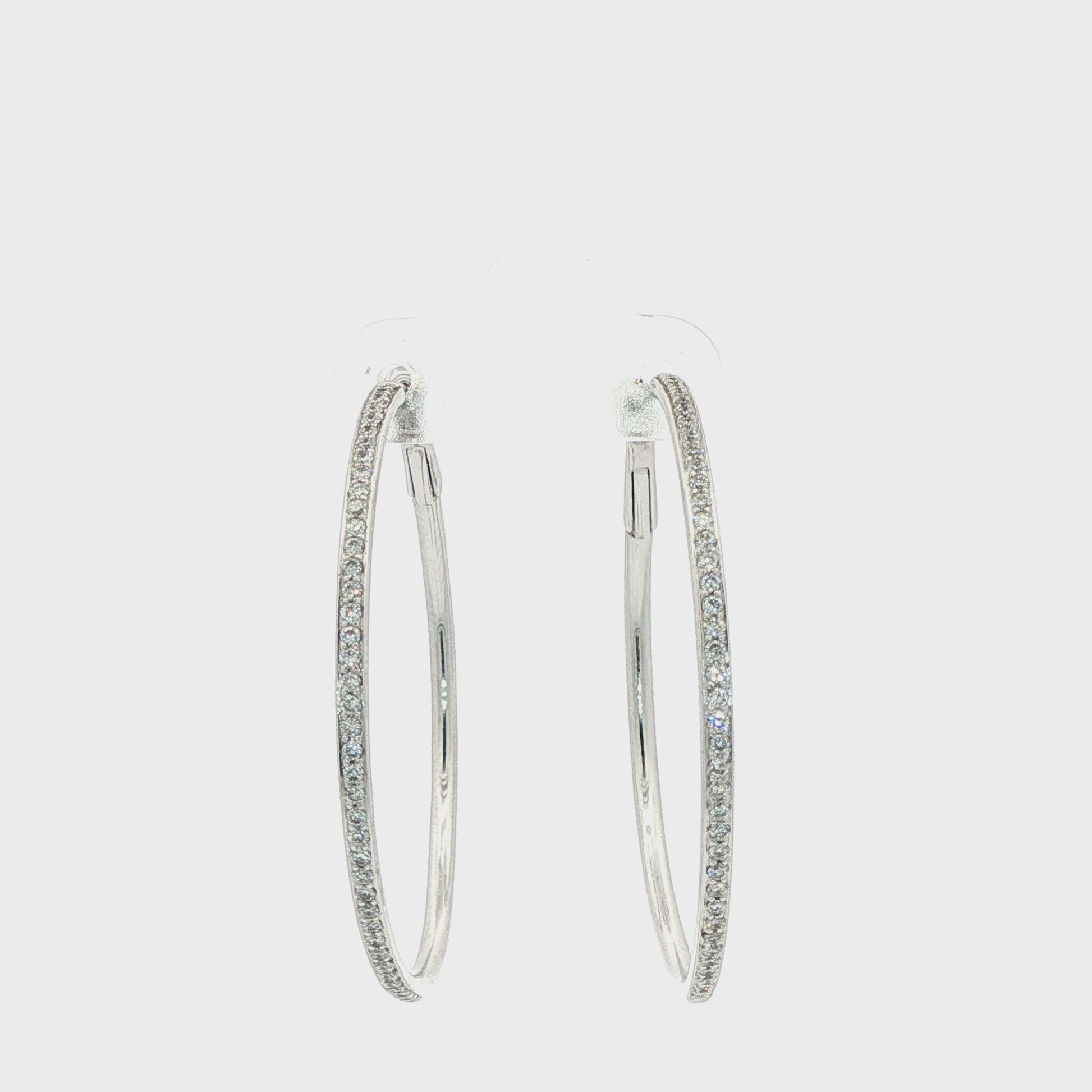 18ct White Gold Diamond Set Hoop Earrings - 0.64ct