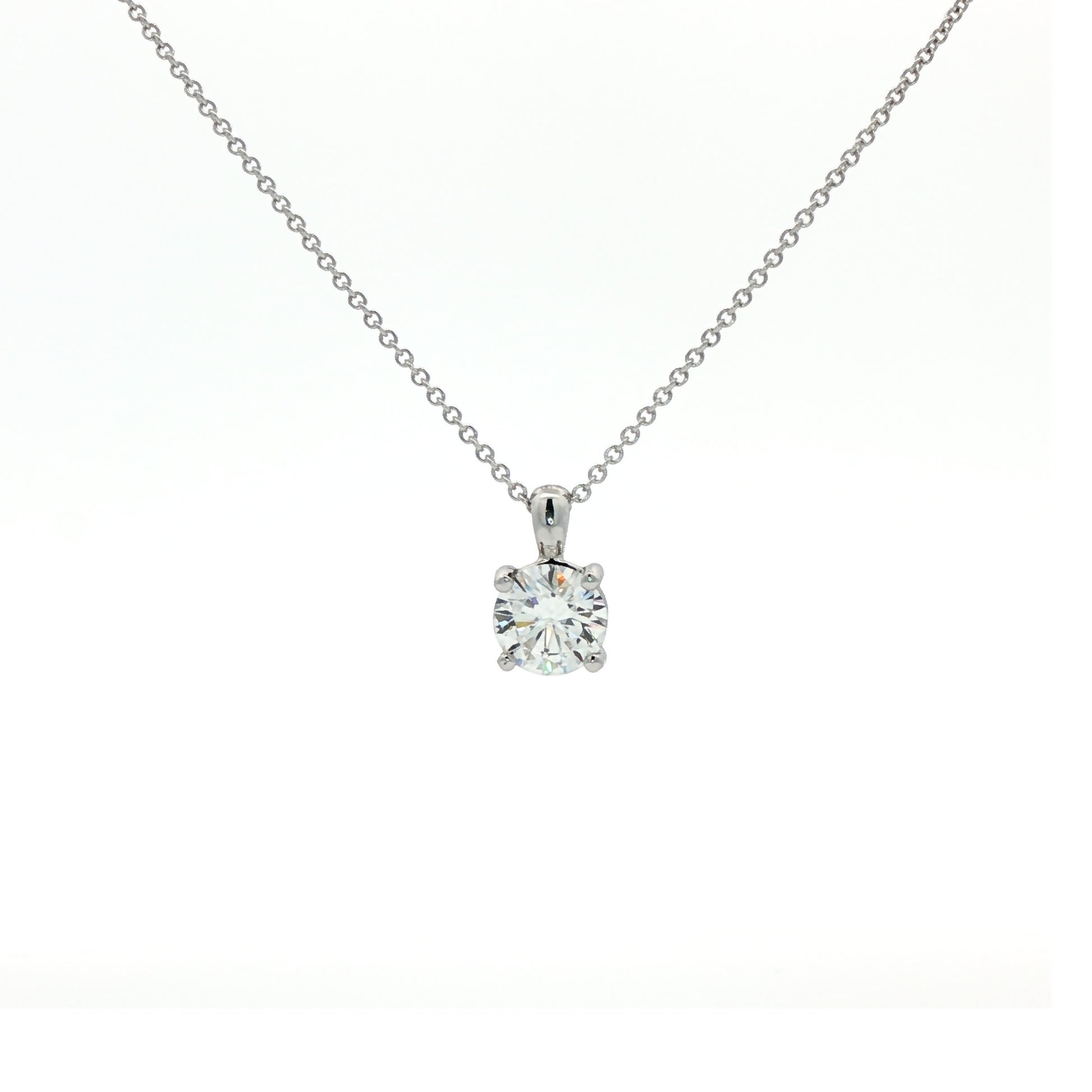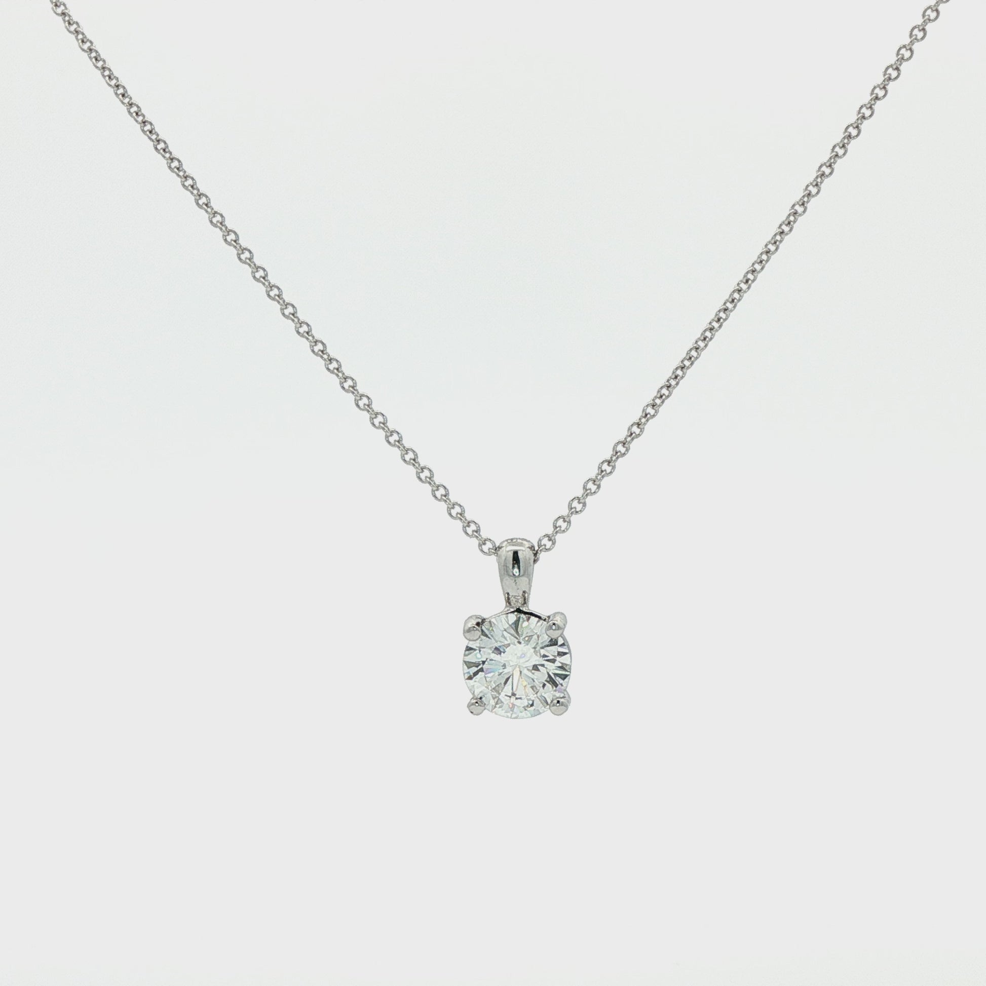 Lab Grown: 18ct white gold brilliant cut diamond solitaire claw set pendant - 1.50ct.