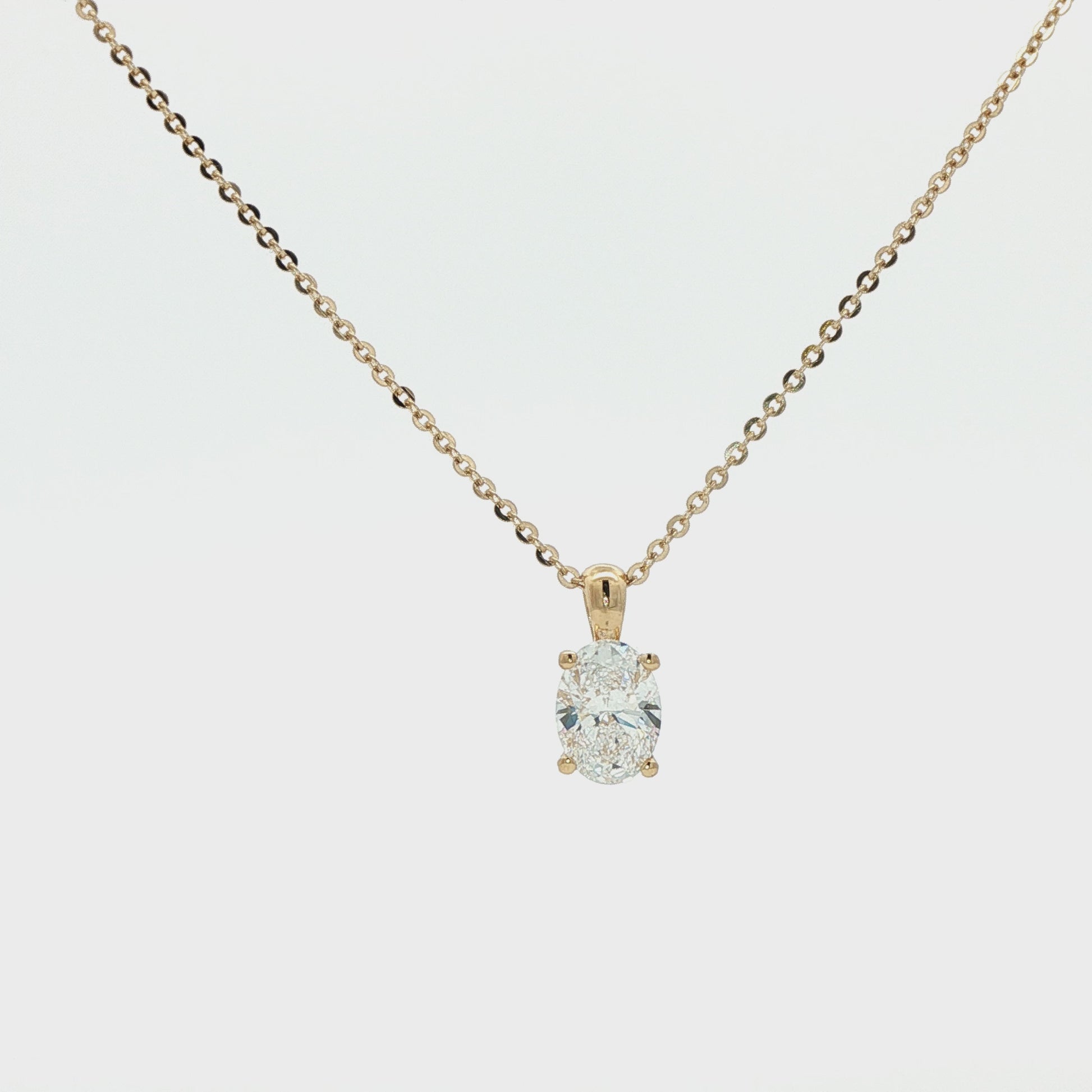 Lab Grown: 18ct yellow gold oval diamond solitaire claw set pendant - 1.25ct.