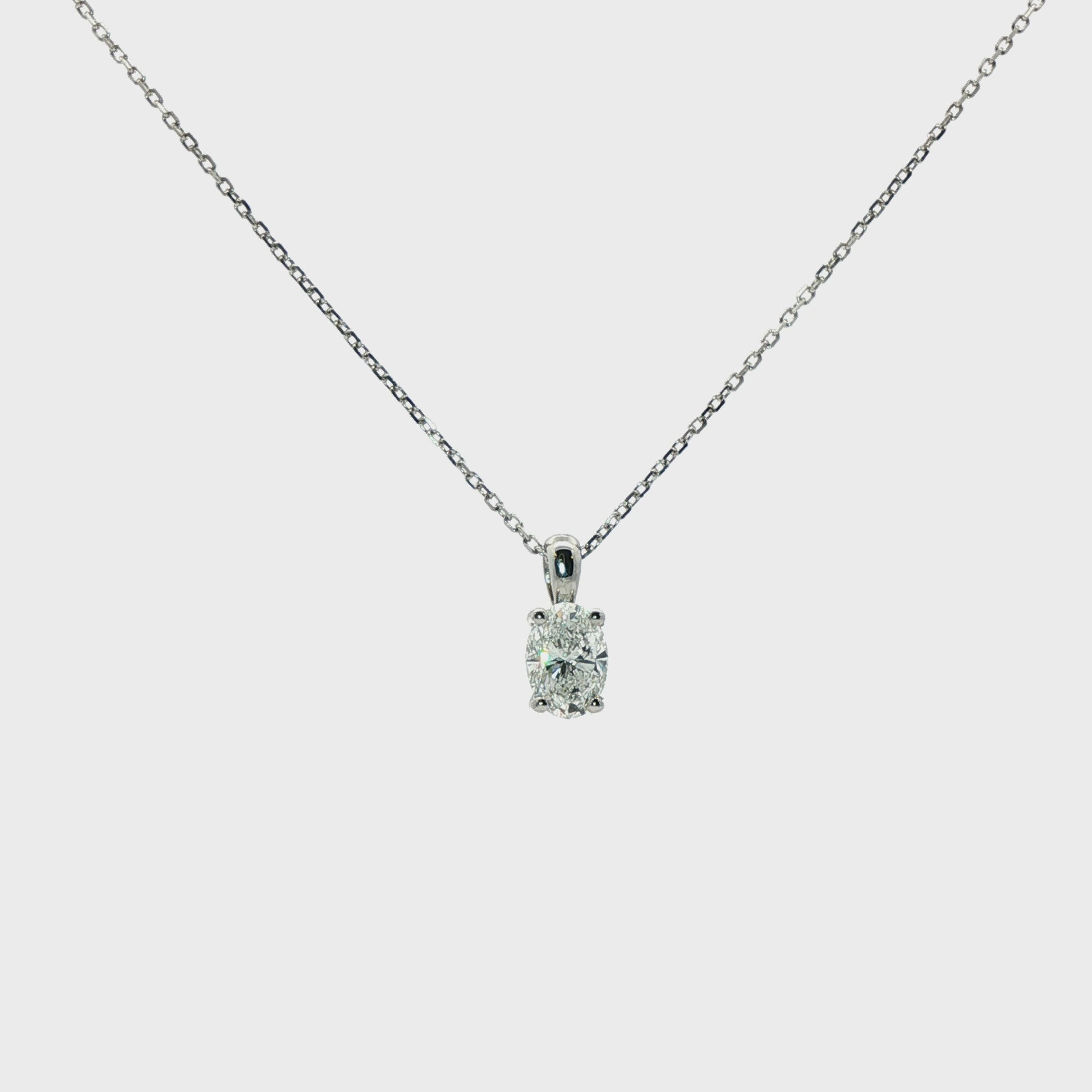LAB GROWN: Platinum Oval Diamond Solitaire Claw Set pendant - 1.00ct.