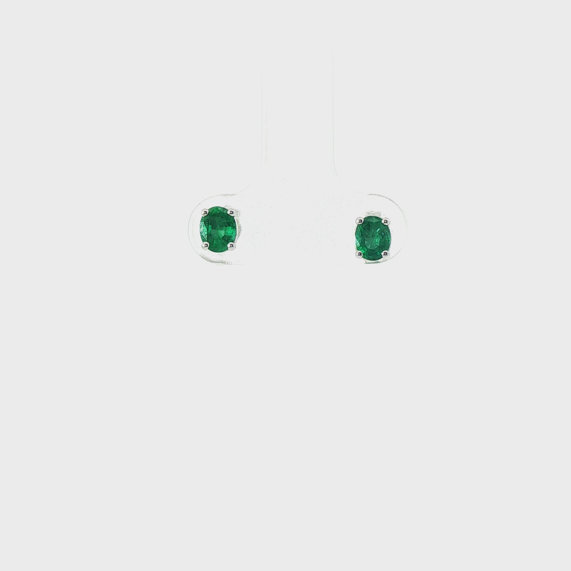 One Pair Of 9ct White Gold Faceted Oval Emerald Stud Earrings - 0.64ct
