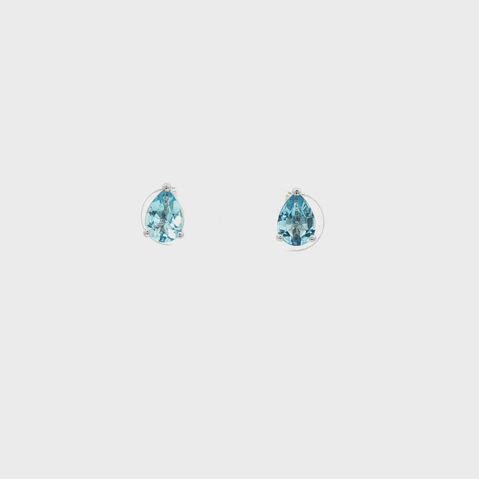 One pair Of 9ct White Gold Faceted Pear Shaped Aquamarine Stud Earrings - A:1.05ct