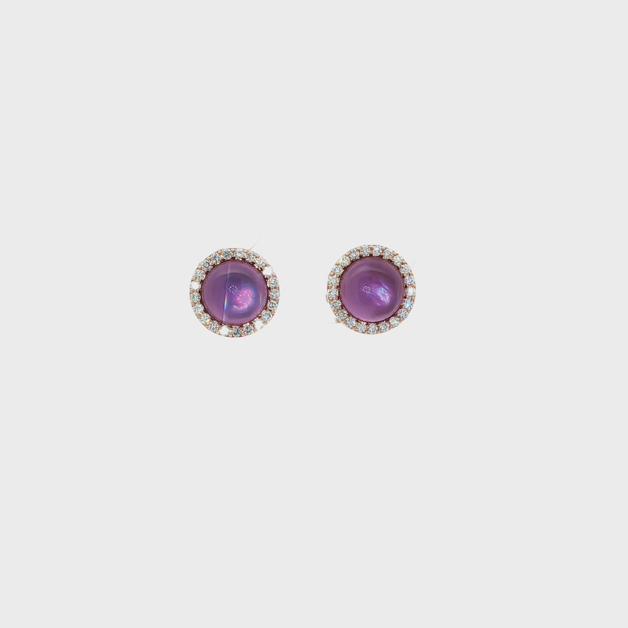 Amethyst ; Mother of Pearl Doublet Cocktail stud earrings with diamond surround by Roberto Coin.